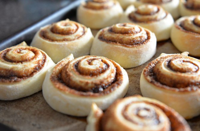 Maple isn’t the only way to make your buns special. Another great flavor that pairs well with cinnamon and warm bread is caramel. We recommend spreading some of the sweet sauce onto the bottom of your cookie pan before you place the rolls in. Then bake, flip over, and enjoy.