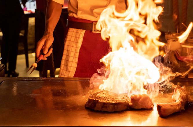 When it comes to going out for dinner, nothing says good food and entertainment like teppanyaki. This Japanese-style cuisine is where food is prepared on an iron grill, over an open flame, table-side. Spatulas and knives are juggled as shrimp and steak sizzle. Think of it as the juncture where the culinary world meets showmanship. It’s a hallmark of the iconic Benihana restaurants made famous when the first one opened its doors in 1964. But if you’ve never been to the world’s largest Benihana, it’s time to pack your bags. If you live in the United States, no passport is needed. You just need a ticket to Las Vegas, Nevada.